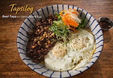 Discover Beef Tapa in Halifax at Barrios. Thin slices of braised beef marinated in soy sauce and spices, served with garlic rice, eggs, and vinegar dipping for a bold and satisfying Filipino meal.