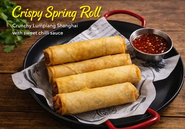 Enjoy Spring Rolls in Halifax at Barrios. Lumpiang Shanghai made with seasoned ground pork and vegetables, fried crispy and served with sweet chilli sauce.