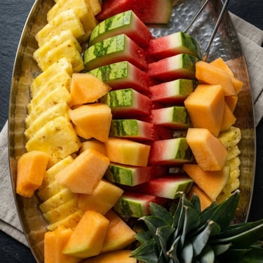 Cut fruit and rotating pastry dessert